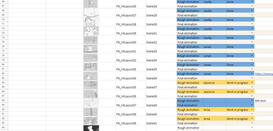 As a producer I'm manageing and supervising more than 20 artist from different departments for 64 shots. I'm collaberating with 10 animators, 3 layout arists, 2 character arists, directors and production support from defferent part of world.I schedule meetings and run,dailies with client and artists. I assest resources, tools, CG assets and list each stakeholders task and task dependencies. Created excel sheet and gantt chart for better visual representation of tasks. I documented every detail of project on shotgun.